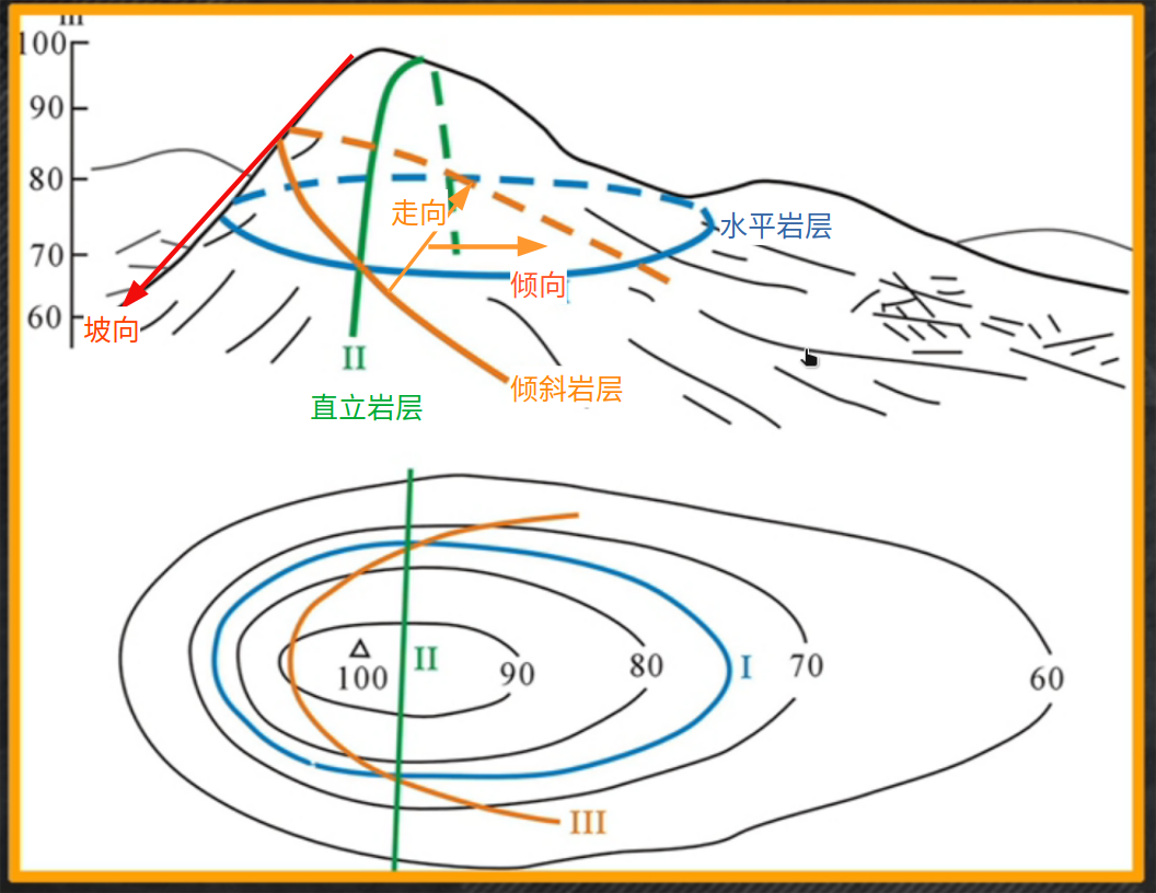- 山坡由多个岩层组成,而岩层只是山坡的一部分